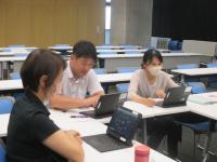 新しいテクノロジーを知る、実践的な教材づくりに挑戦する、講師の先生の実践を紹介していただく、模擬授業を受ける、といった、盛りだくさんの内容で、ディスカッションや演習を通じて、新たな発見や学びが多くあったようです