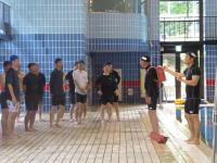 今回は、松山市総合コミュニティセンターの温水プールやサブアリーナ等をお借りして、「水難救助法」と「特別活動・レクリエーション活動の進め方」の研修を行いました。