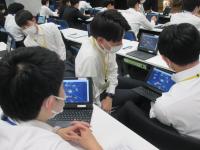まず、ロイロノートの教師側での操作を演習した後、グループで問題を送信して答えてもらうなどの模擬授業的なやり取りをすると、参加者からは笑顔が見られました。
